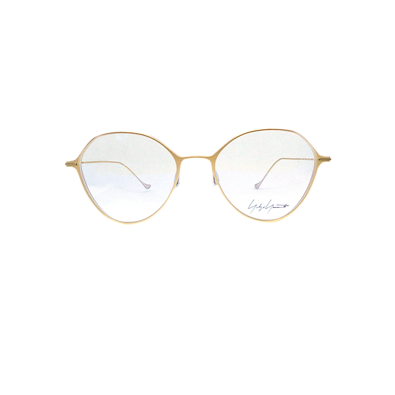 Armação modelo da Yohji Yamamoto em aço inoxidável dourado. Design contemporâneo estudado em cada detalhe para um modelo no perfeito estilo Yohji.